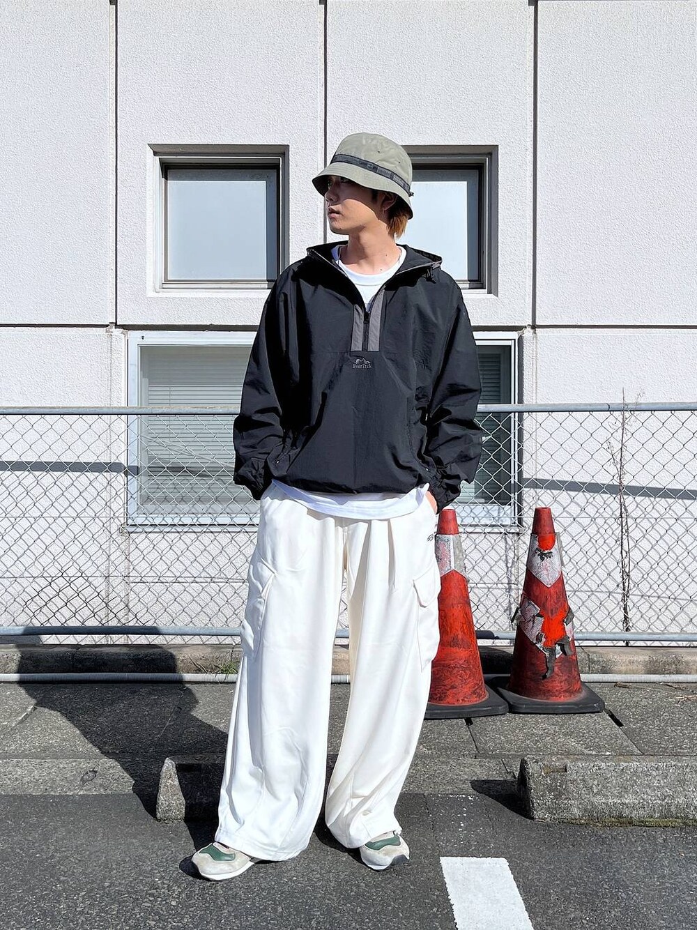 RIN(RAGEBLUE アミュプラザ鹿児島)のカーゴパンツ「【jumpit】ジャージバワイドギーカーゴパンツ」を使ったコーディネート