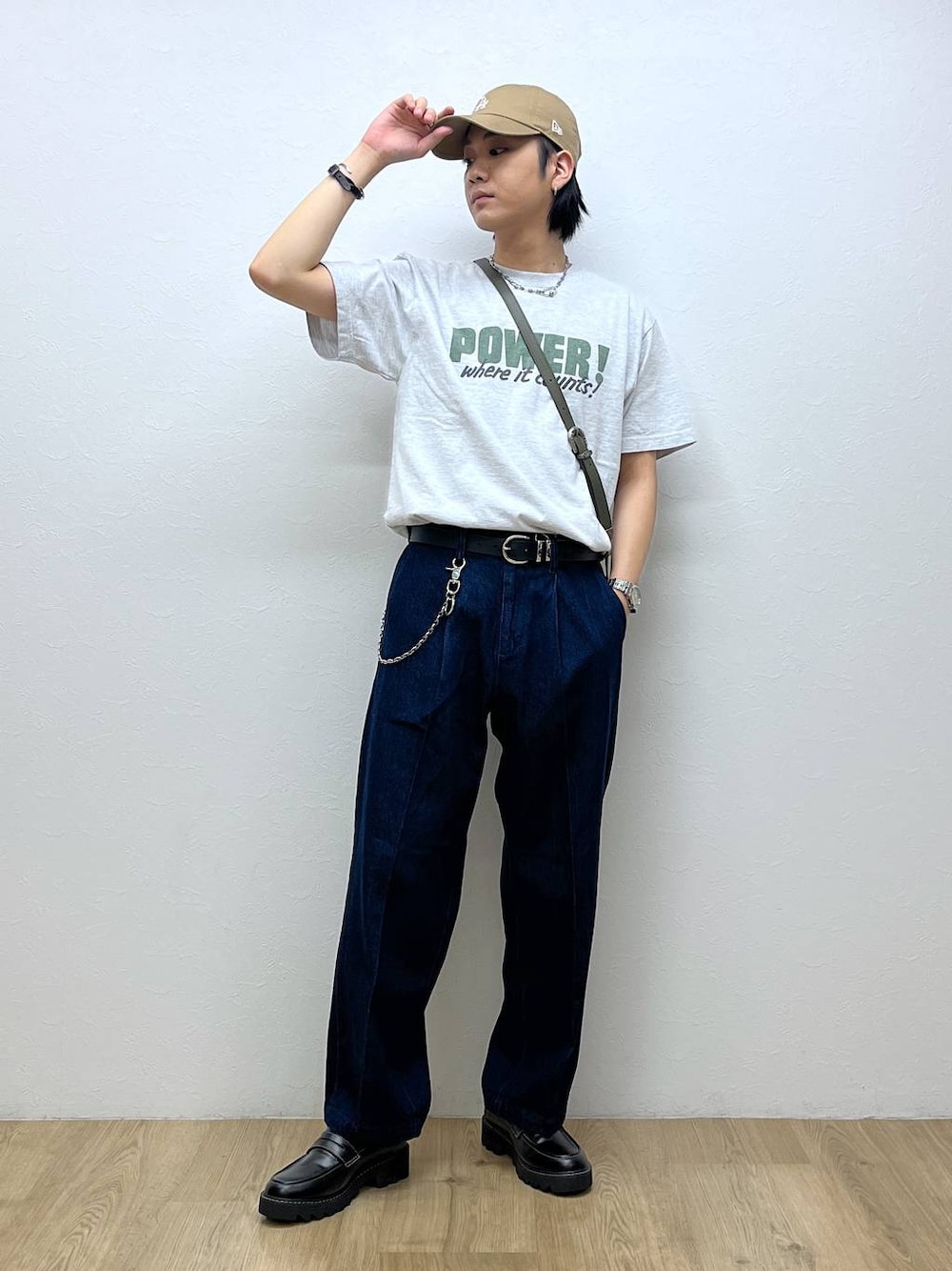 カジュアルコーデ✨ 古着感あるTシャツがめちゃくちゃかわいいです、、 タックインしてスタイル良く見せるのにハマってます✌️
