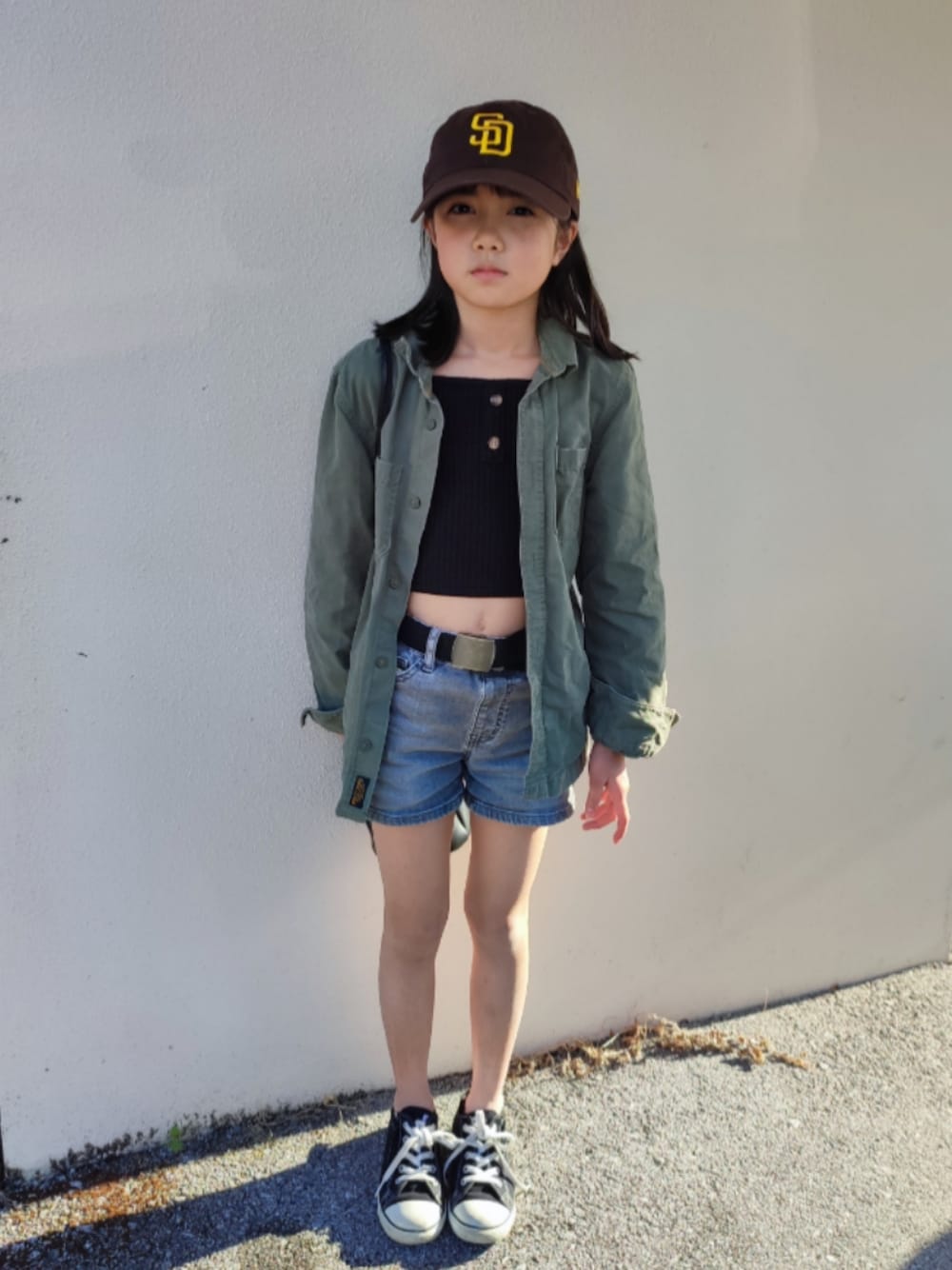 ・古着屋さんで見つけたワークシャツ ・お父さんから奪ったNEWERAの9twenty ・狭くなってきたコンバース