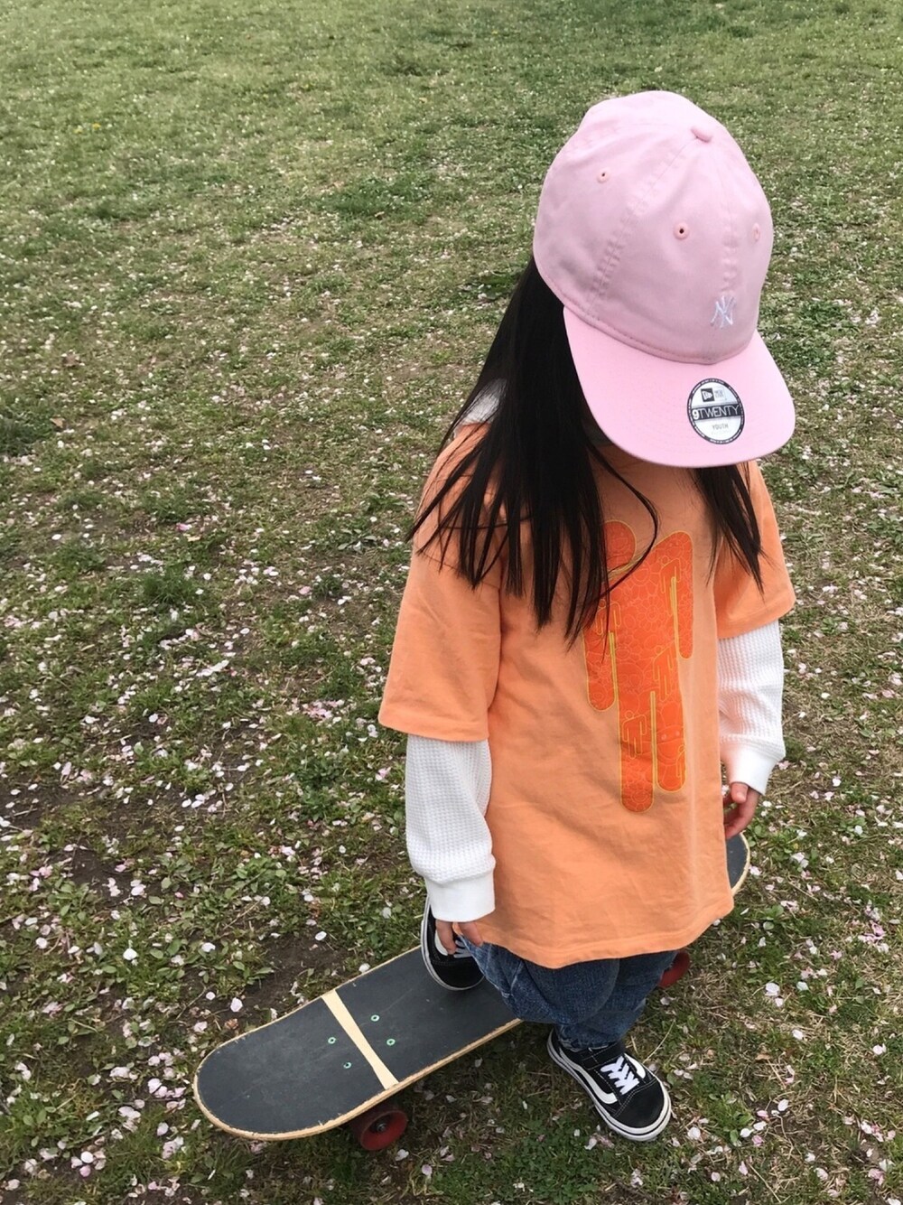 RuRu..☺︎のキャップ「ニューエラ NEW ERA 12325578KIDS920 ペールピンク」を使ったコーディネート