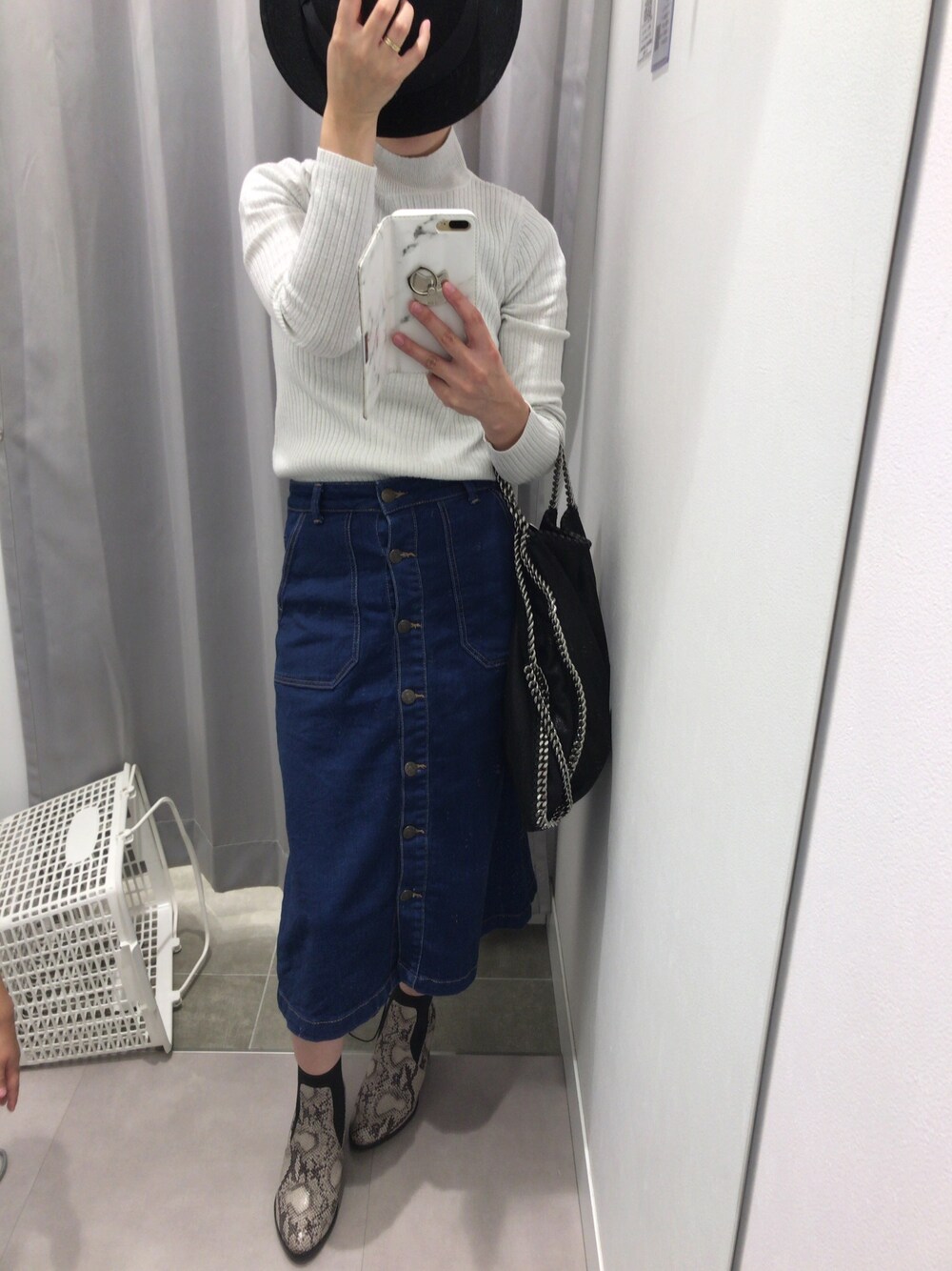 GUにサイドゴアのブーツ見にきたけどやっぱり好きなデザインではなくあきらめていたら…990円でパイソン風のゴアブーツ‼︎こっちの方が自分のスタイルにあってそう!