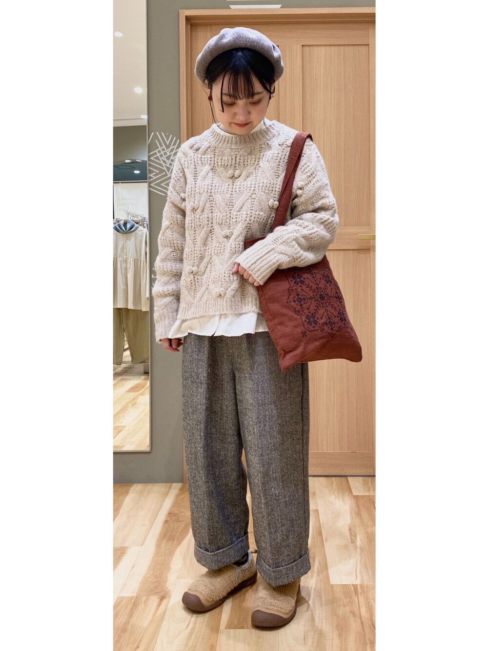 おはようございます☀️ ご覧いただき、ありがとうございます! ポンポンが可愛らしいニットは、丈が短めなのでブラウスと重ね着しても今時らしい着こなしで素敵です🧸🌟 現在、なんと全品お値下げとなっております! 本日着用のニットもパンツも新作アイテムですが、30%オフでご用意しております🎶 ぜひ店頭でチェックしてみてください🤍