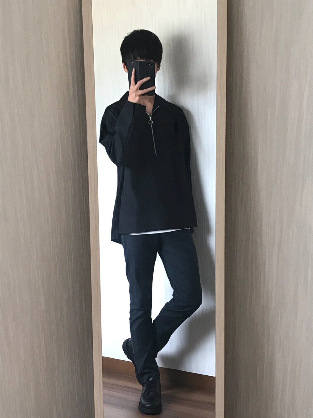 夜空のシャツ/ブラウス「【STUDIOUS】TRクリアハーフジッププルオーバーシャツ」を使ったコーディネート