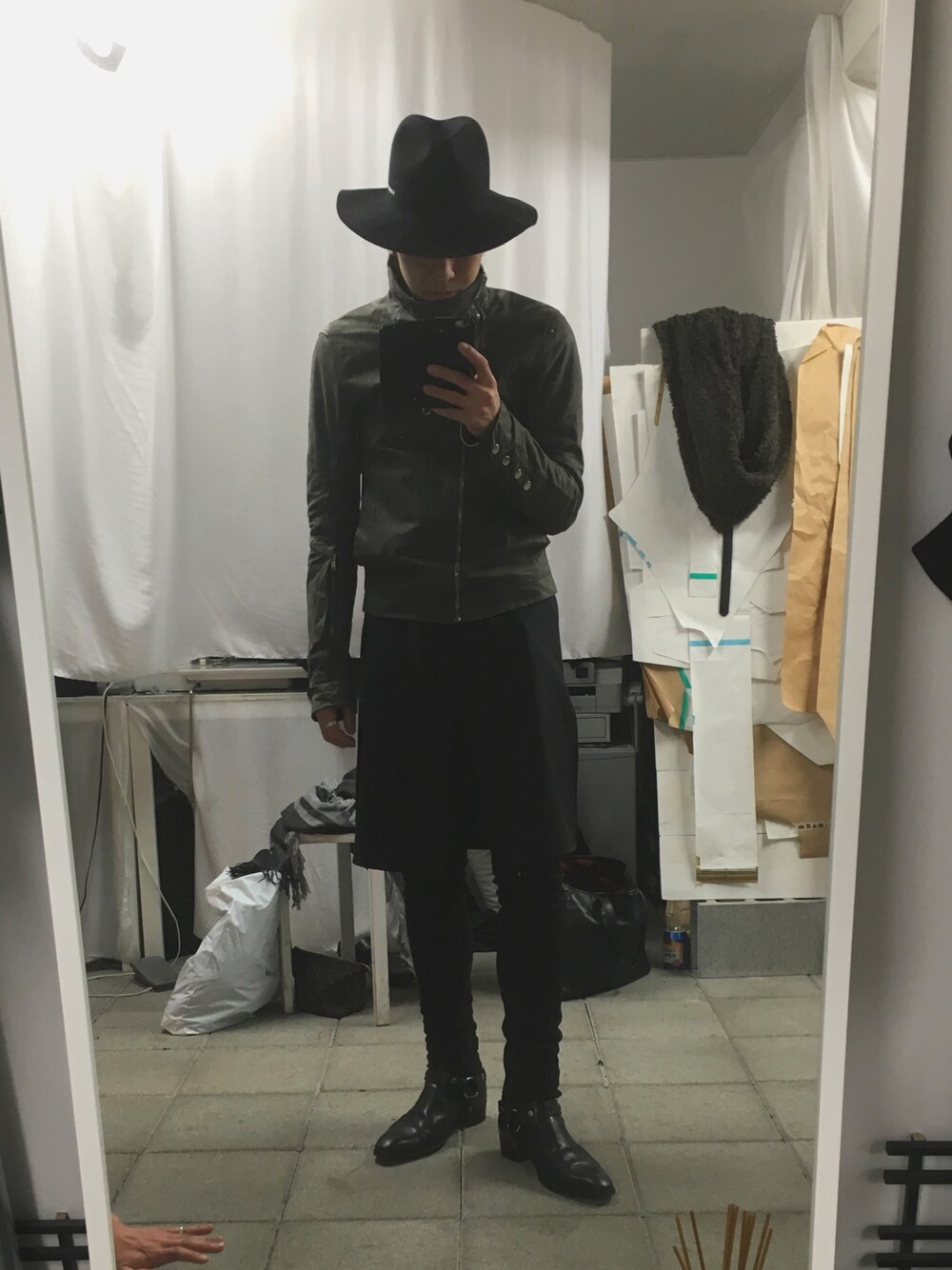 リックのライダースとkujakuのシャツの組み合わせは最強