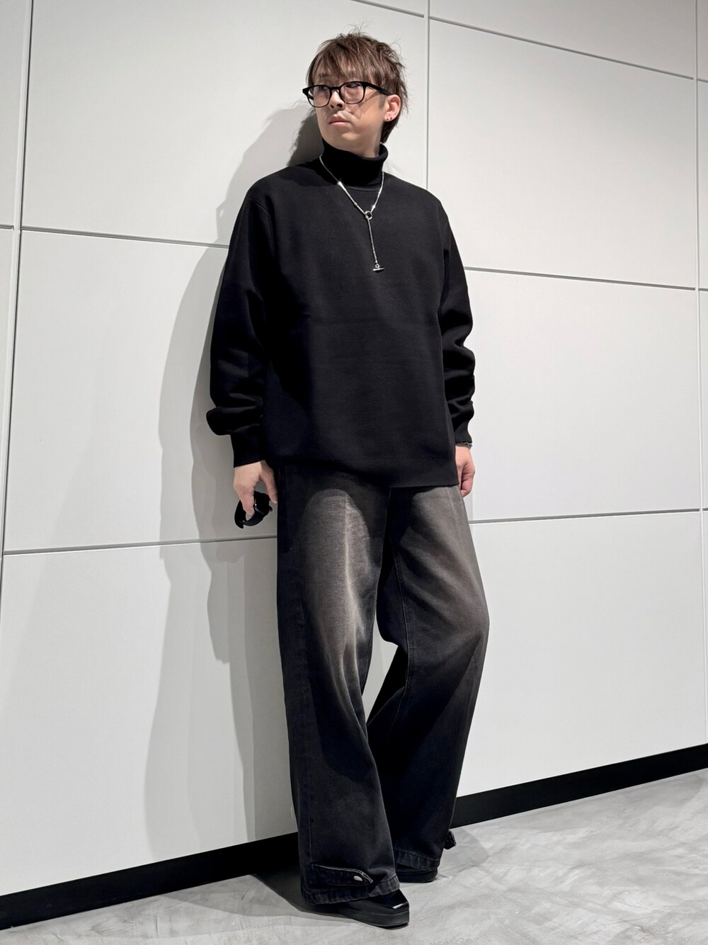mochiのニット/セーター「スムースニットタートルネックセーター ブラック」を使ったコーディネート