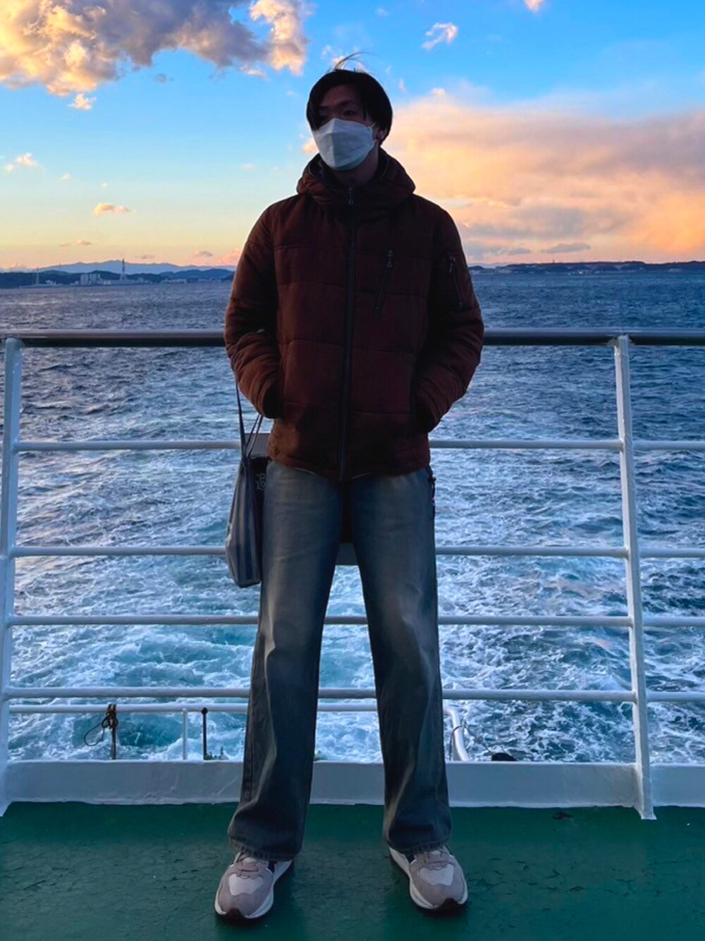 船の上コーデ。笑 スニーカーは初のニューバランス 未だ大事に履いてます😌 デニムは韓国のショップで購入したものでアース染めが気に入ってる
