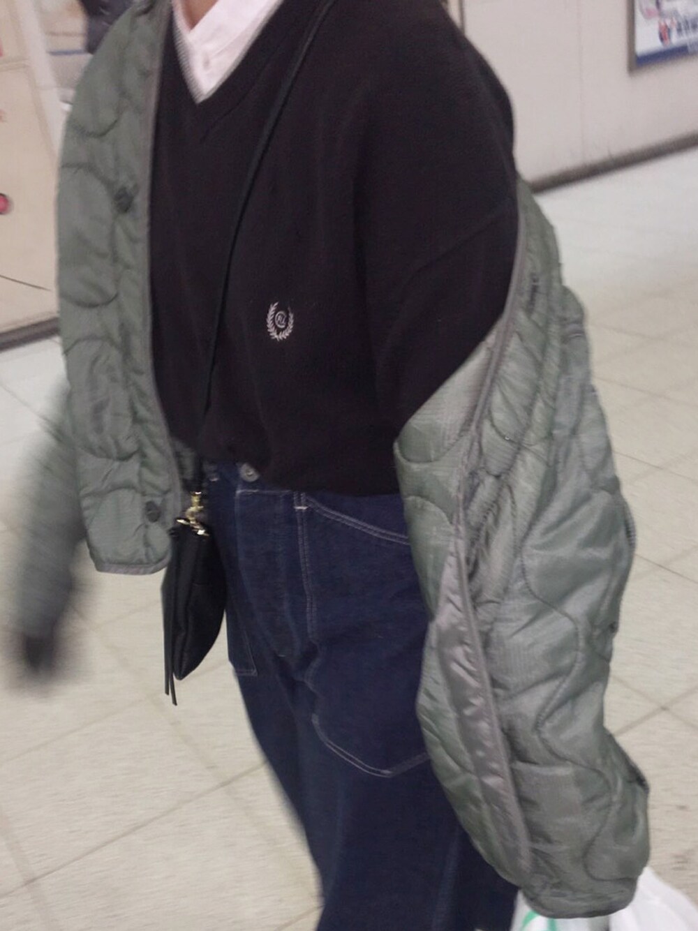最近好きな格好。 ノーカラーのシャツが欲しくて襟を切っちゃったの笑 ノーカラーってなんか小洒落てよき