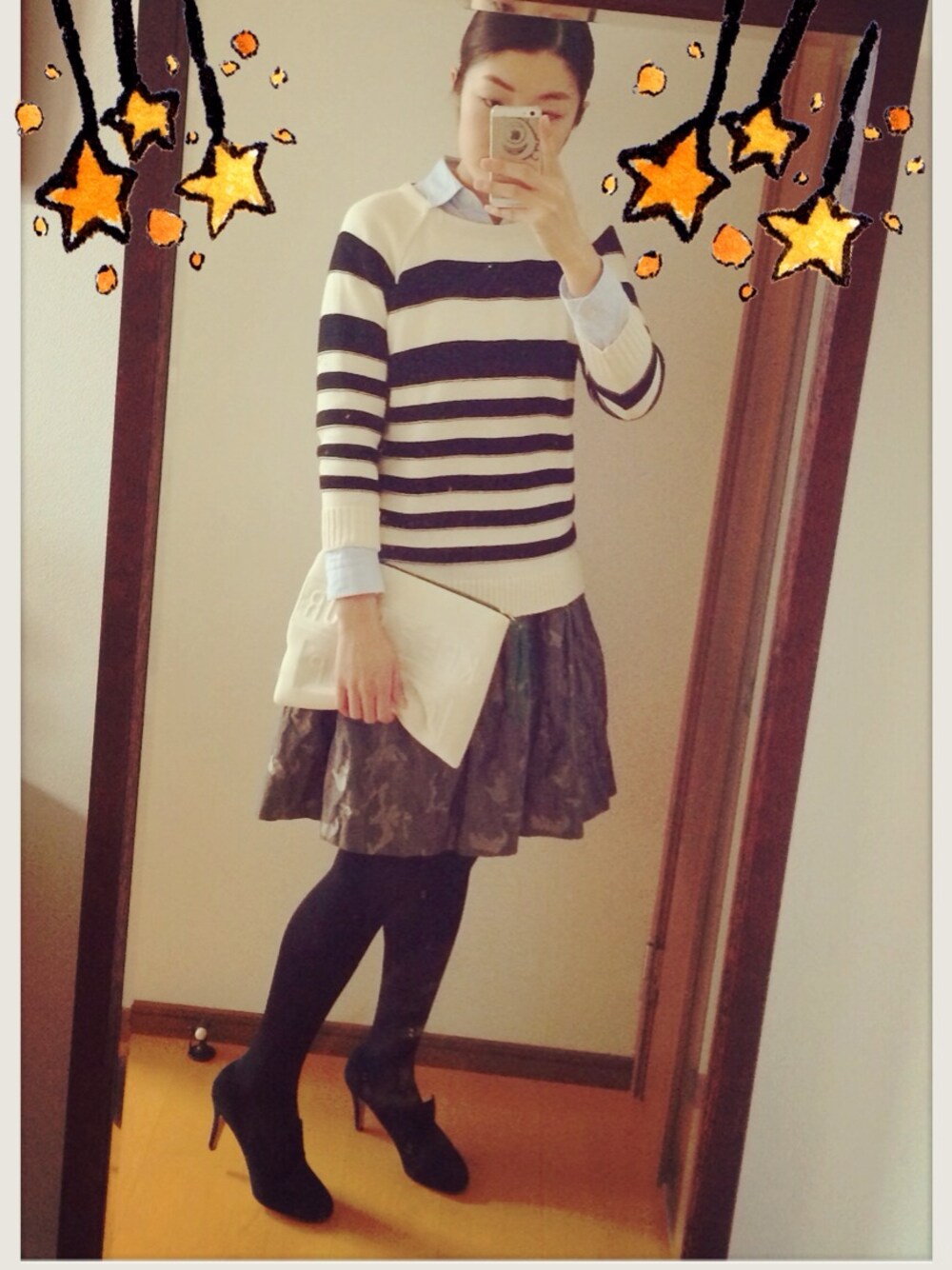 サトコのニット/セーター「ガーターボーダーニットプルオーバー」を使ったコーディネート