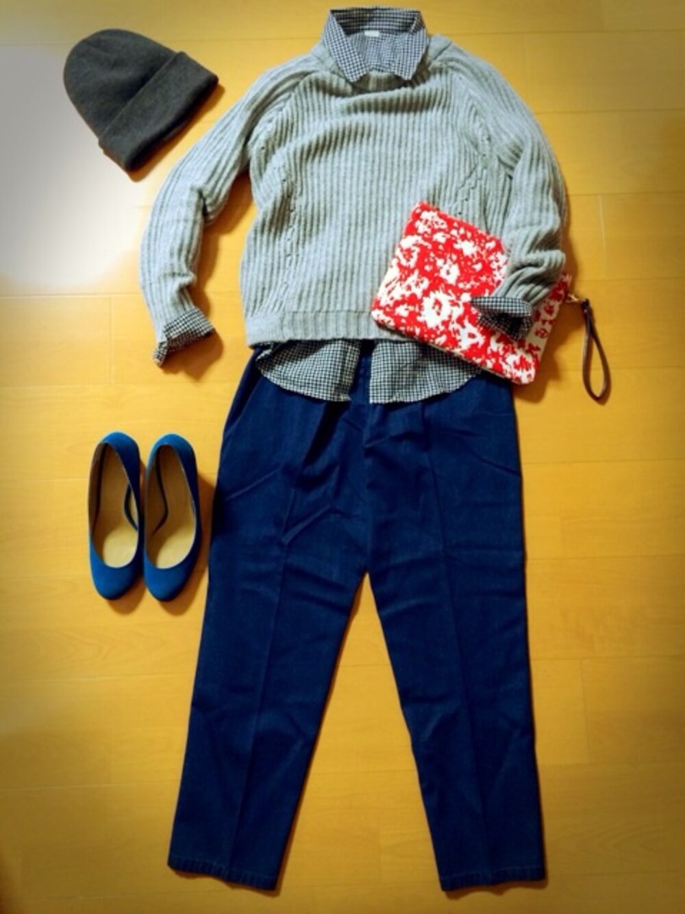 クラッチの赤とパンプスのターコイズがポイントです☻