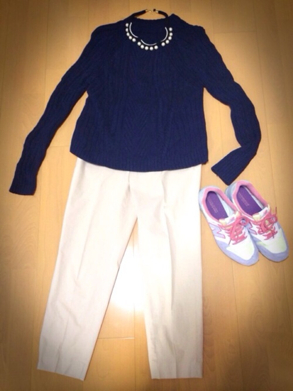 ネイビートップス:ZARA ネイビーとパウダーピンクで渋めの可愛いめなカラーリング。スニーカーのカラーで甘さを少しUP‼︎
