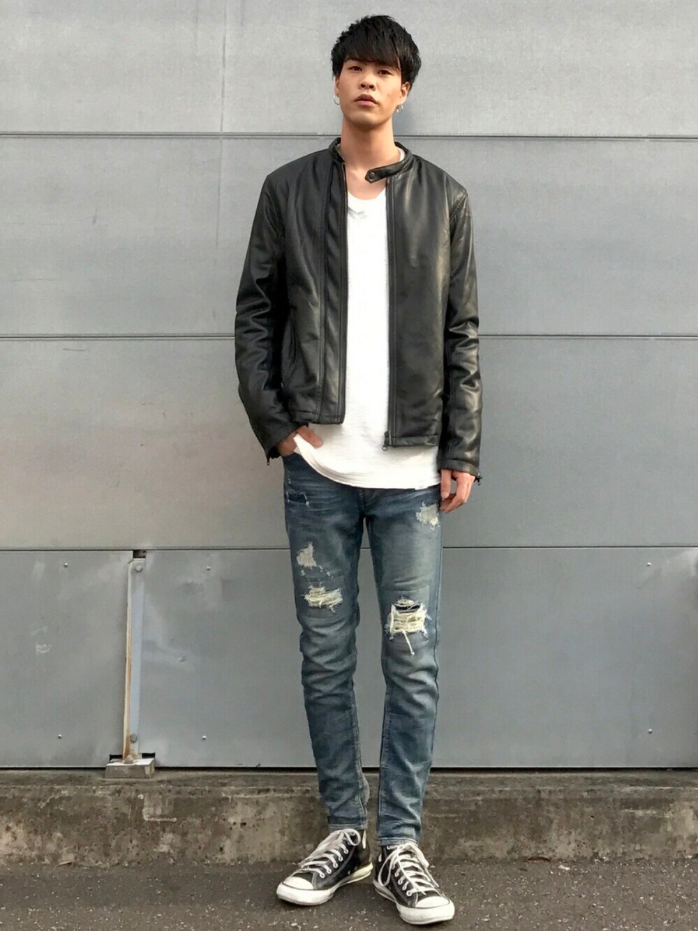SHUHEI SATOのブルゾン「合皮裏ボアシングルライダース」を使ったコーディネート