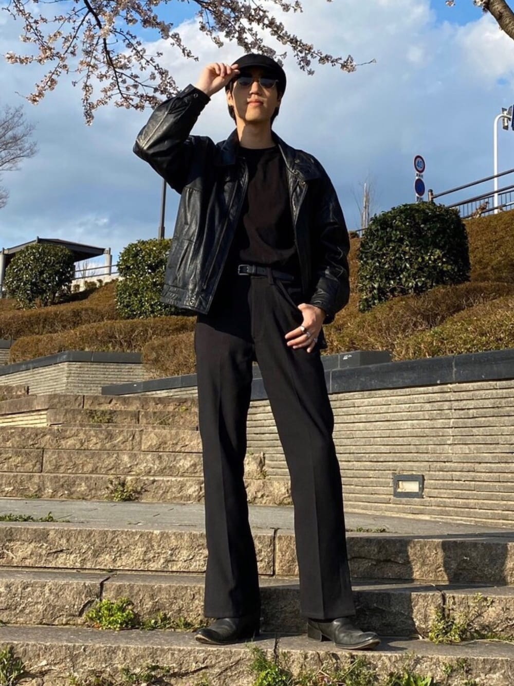 こんにちは! レザージャケットとフレアパンツで少しレトロなコーディネートです koeのロンTはどんなコーディネートにも相性が良くヘビロテしてます!