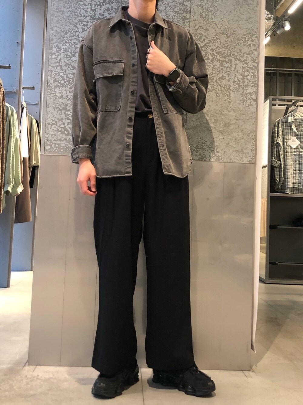 こんにちは! 春はkoeのデニムジャケットがオススメです! 3サイズで展開していてジェンダーレスに着て頂けるアイテムとなっております 少しくすんだブラックが無骨な感じでカッコいいです instagramでも投稿してますので是非フォローお願い致します! →sugi_nooooo