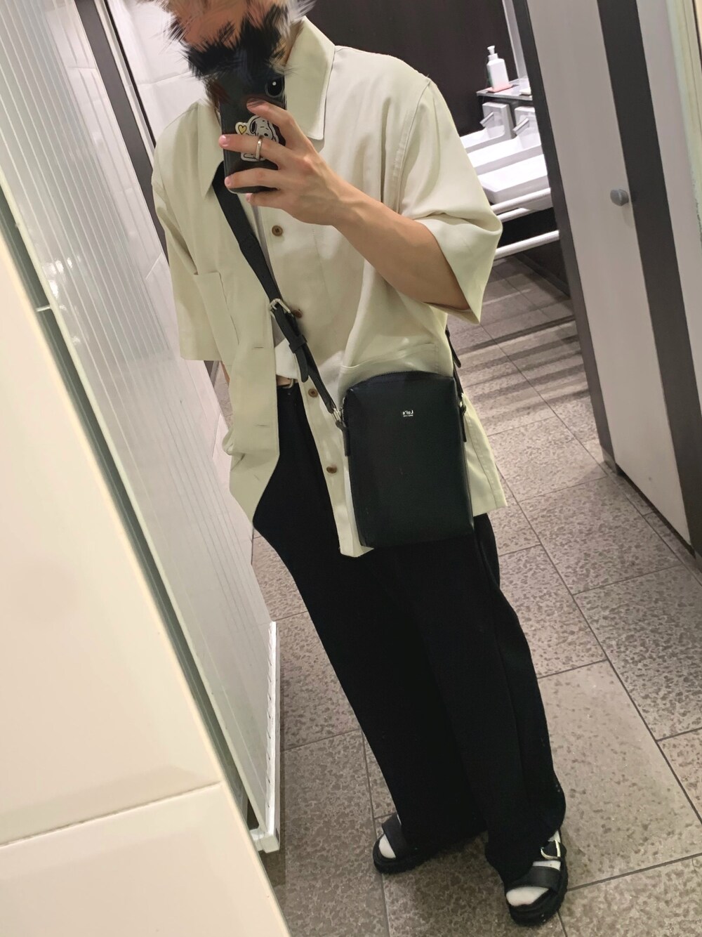 . GUのカットソーカラースラックスがとてもいい。 レディースだけど全然余裕できれちゃいます。 今日はゆるモノトーン。