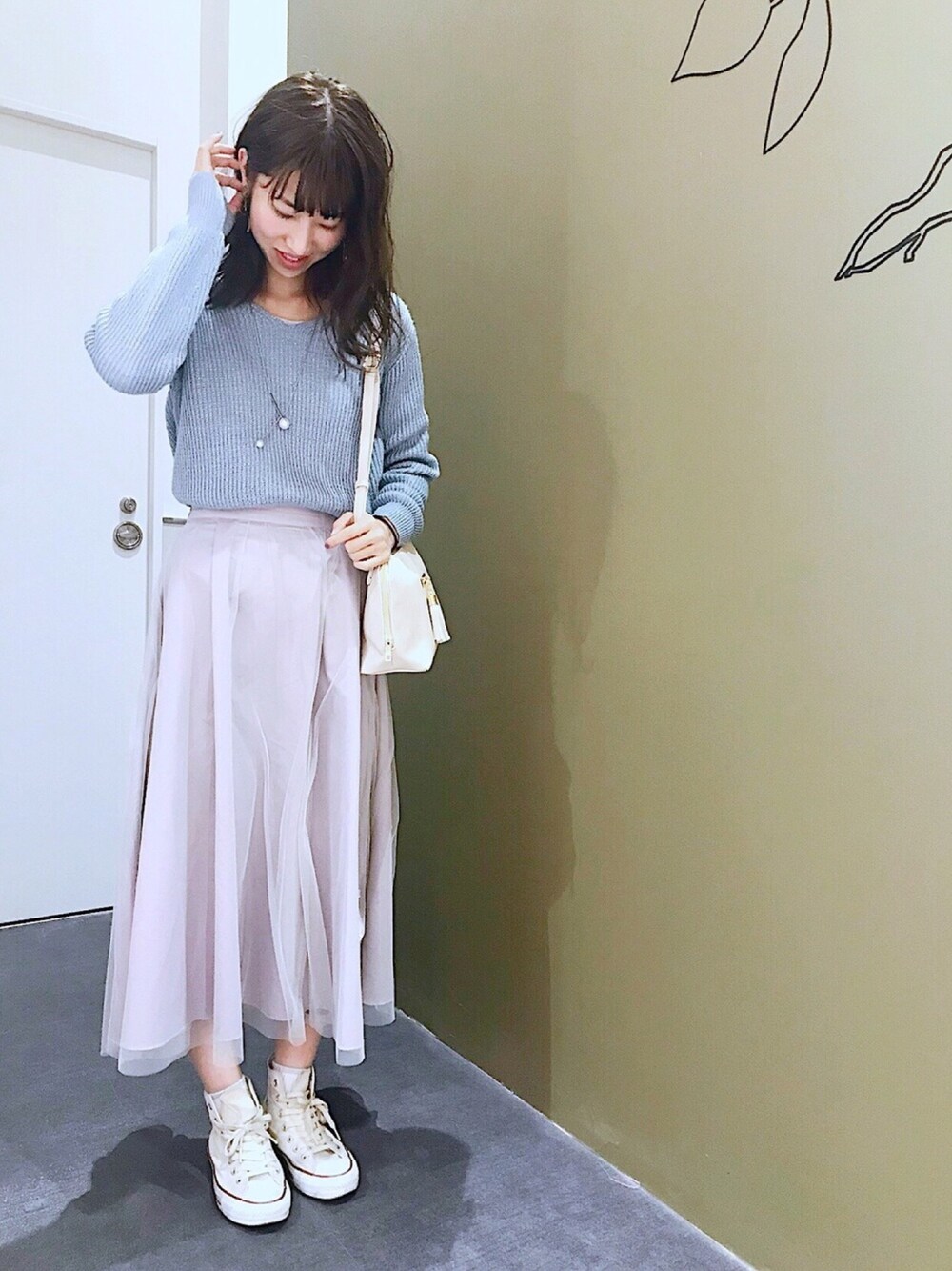 ご覧頂きありがとうございます🙇🏻♀️❣️ 淡いトーンでまとめた春コーデ🦋 アイスブルーは同じトーンでまとめたり、 シンプルになりすぎないように 素材感のあるアイテムで合わせたりするとgood🙆♀️✨ チュールのスカートはリバーシブルなので、 色々と着回し出来ます😊 ラメ×チュール=可愛らしさを スニーカー👟でカジュアルダウン👌