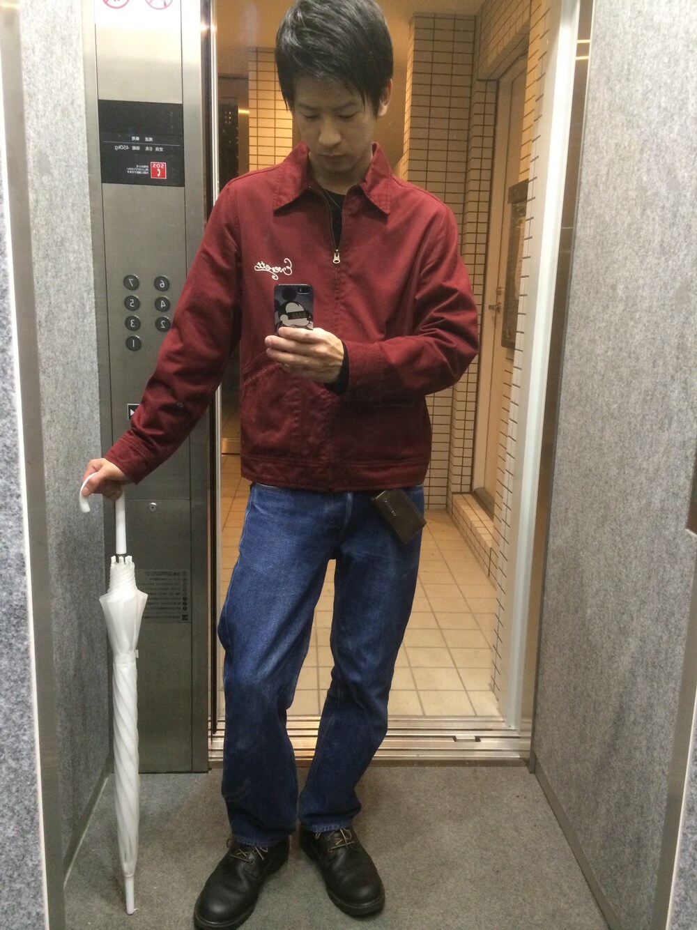 ブルー系のその他パンツを着用したメンズの秋コーディネートの1枚目の写真