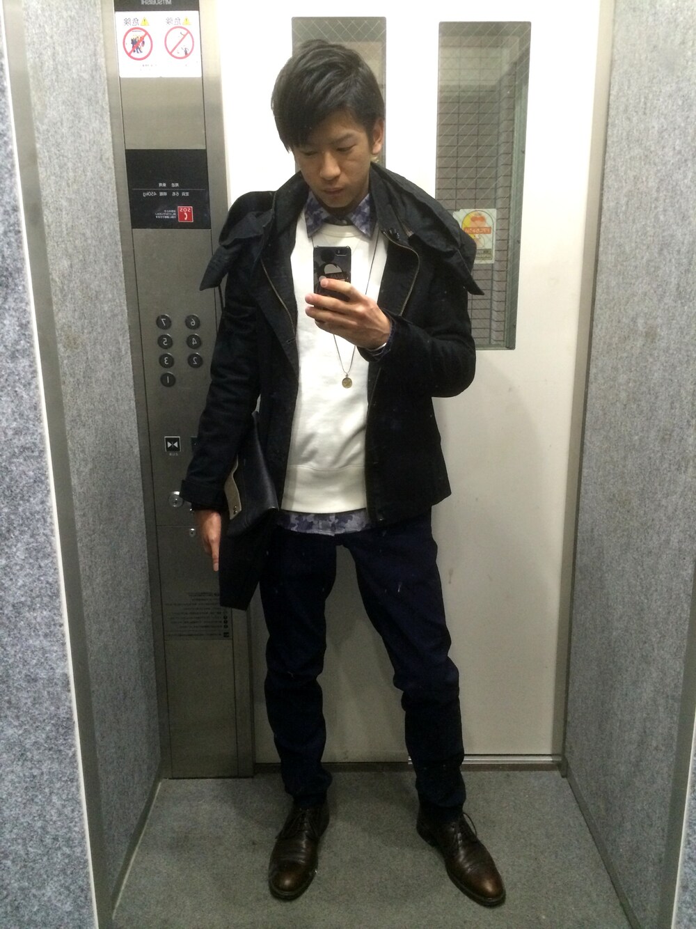 昨日のプチプラコーデ ・アウター ? 2,000円 ・シャツ gu 2,000円 ・スウェット gu 1,000円 ・パンツ gu 1,500円 ・バック RAGEBLUE 3000円