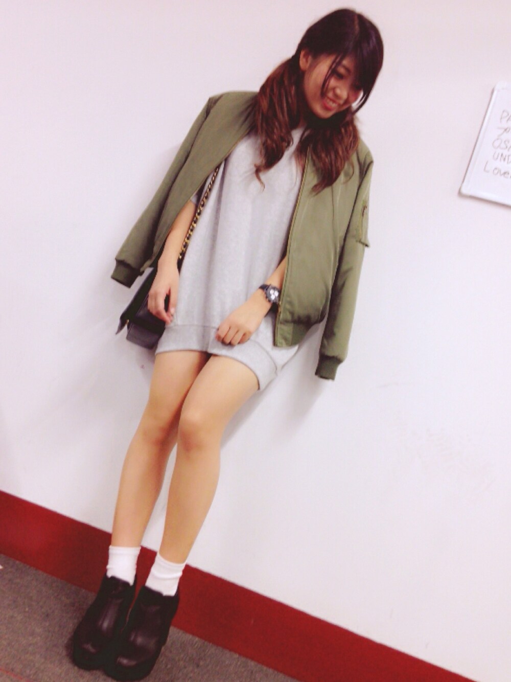 今季大ブームのMA-1を最近よく着てます💟💟 あったくて可愛いカーキ推しです◎