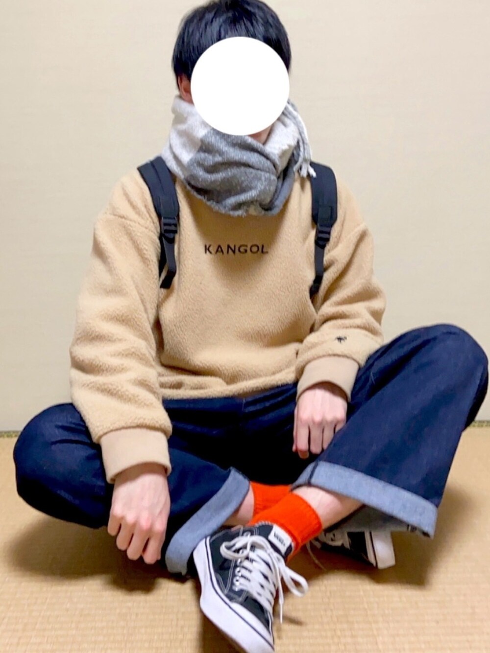 📣投稿2回目! KANGOLさんのスウェットはほんとにイイです! なんにでも合いますよ🤠 📌チャームポイントはオレンジの靴下かな、? 📌このマフラーモフモフでほんとに暖かいです🤗 真似しやすいと思うからぜひ真似してみて下さい!! ではでは👋