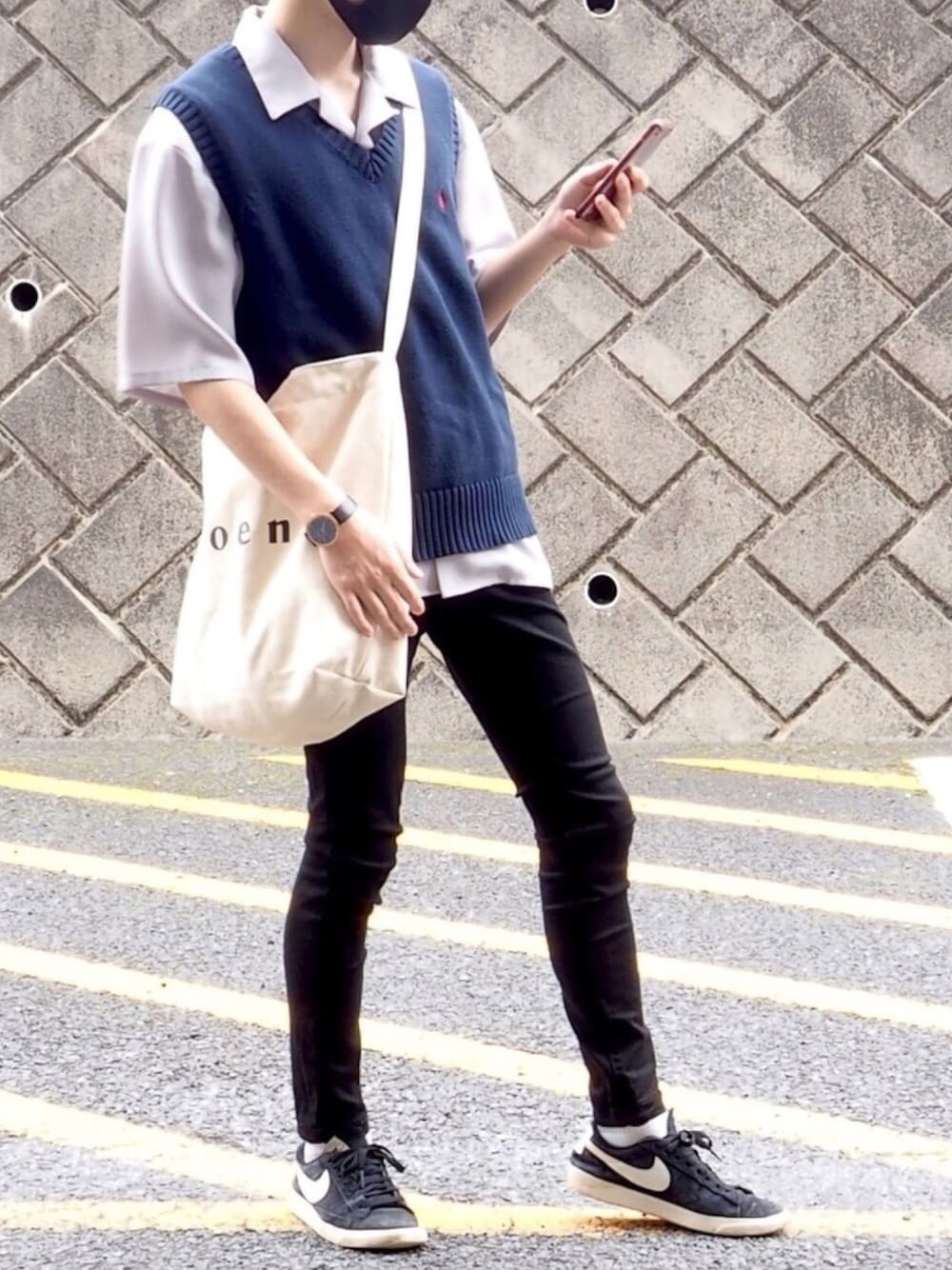 おはようございます! いつも見てくださりありがとうございます✨ ✨オープンカラーシャツ×ベスト✨ KANGOLのオープンカラーシャツにベストを組み合わせました! また、全体的にゆるくなりすぎないように 黒スキニーで締めて、バランス良くコーデしました😎 我ながら可愛いコーデができたと思ってます😍笑笑
