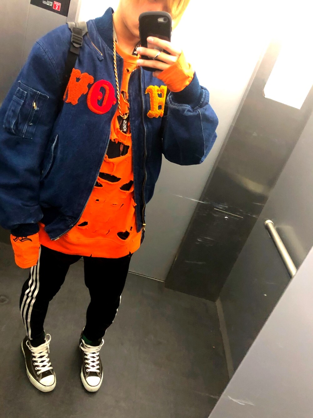 アディダスジャージにリメイクシャツ、アウターは超お気に入りのアウターでクツはコンバースでストリート系に(^^)