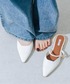 サッと履けて楽ちんなのにキレイめに合わせられるミュール✨ ヒールがゴールドのデザインヒールなのもかわいいです