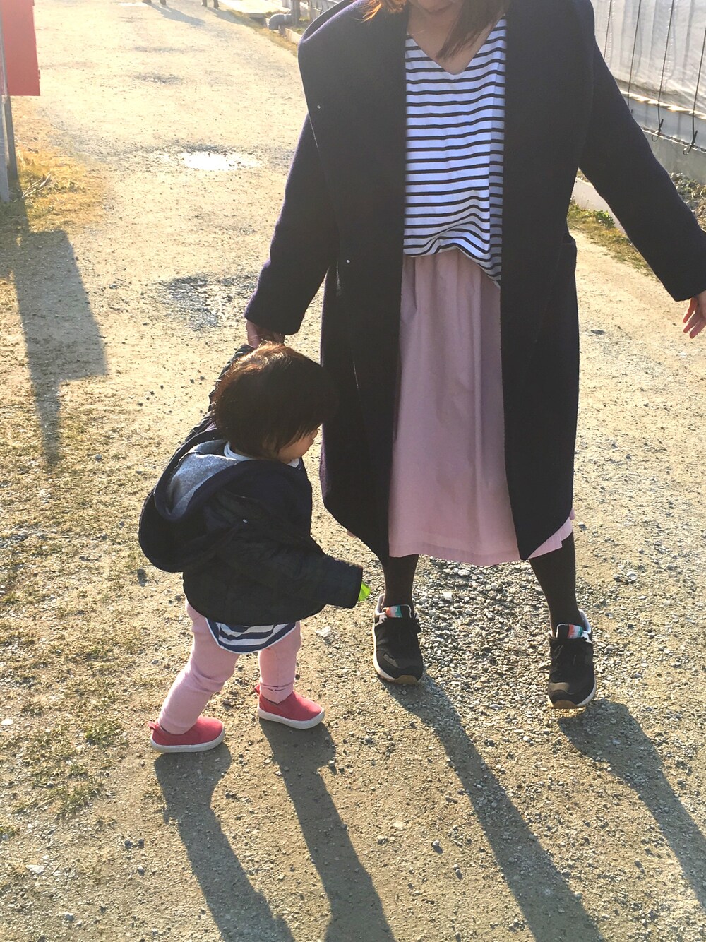 ボーダー×ピンク の親子リンクコーデ 👩🏻❤️👧🏻 ユニクロSALEの時にまとめ買いしたリブのレギパン👧🏻 春色を買ってよかった…子供らしくてかわいい🌷