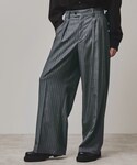 綺麗めなスラックスにカジュアルなトップスを合わせて、少し崩したイメージに。