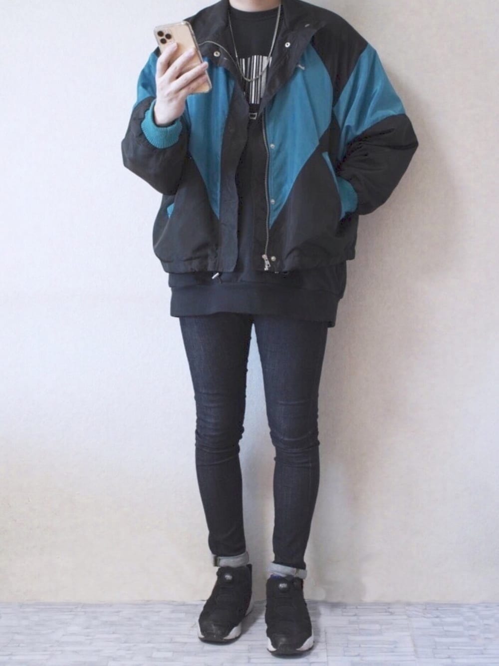やじのナイロンジャケット「【WEB限定】配色ビッグシルエットブルゾン」を使ったコーディネート