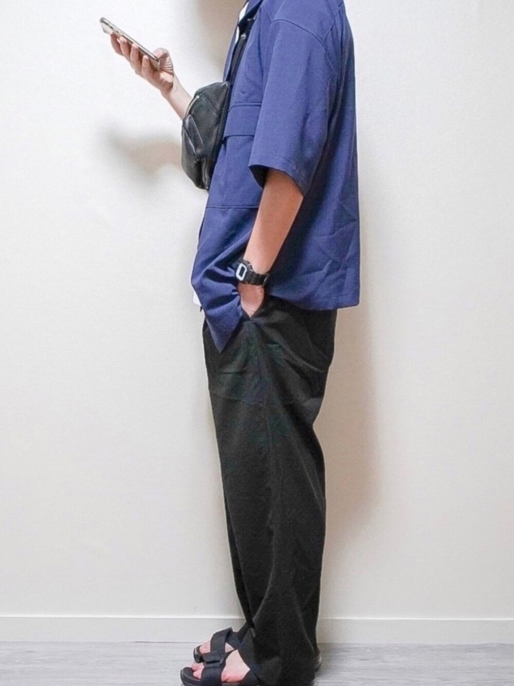 #ゆるコーデ おはようございます!やじです🐼 今日はGUのドライダブルポケットオープンカラーシャツ(5分袖)を使ったコーデです!☺️ オーバーサイズで生地がしわになりにくいのでおすすめです! 青白黒の黄金カラーで配色しました! パンツもゆるく合わせています インスタ→やじで検索!