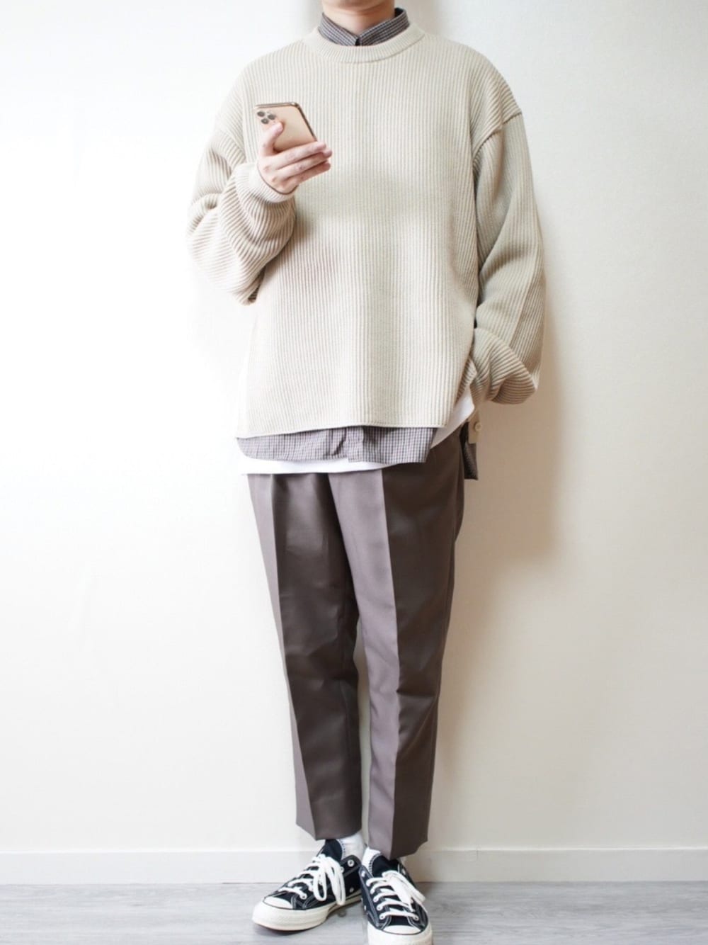 やじのニット/セーター「OVERSIZED 7G AZE KNIT」を使ったコーディネート