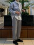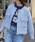 淡いブルーのツィードジャケットは、グレーやベージュなど明るいアイテムと相性が良く、一枚で春らしい着こなしになります! 着丈が短いので、シャツの上から羽織るだけでレイヤード感が出て、スタイルアップにもなるのでおすすめです!