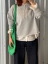 カジュアルなスウェットスタイルに ブラウス合わせで甘さをプラス🤲🏻💞 ・トップス ゆったりとしたサイズ感でレイヤードも しやすい一枚。 カットオフデザインで着丈が短い為 ボトムスを選ばずスタイリングいただけます^^ ・ブラウス キラッと光沢感のあるシアー素材が春らしい 2wayブラウス。 袖のシャーリングがポイントです。 オンオフ兼用できるおすすめのアイテムです♩ ・パンツ 程よく余裕のあるワイドテーパードシルエット。 柔らかい生地感で締め付け感無く 着心地楽ちんなデニムパンツ✨️ 160cm38サイズ着用 ・バッグ グリーンカラーとロゴがポイントの マルチに使えるトートバッグ🌿 見た目以上にマチが広く、旅行用バッグにも 最適です! ポケッタブルなので、内側のポケットに まとめることができ、お持ち運び用のエコバッグ としてもご使用いただけます! Instagram : ssor_a12 ‥‥‥‥‥‥‥‥‥‥‥‥‥‥‥‥ 詳細は下からご覧ください↓↓