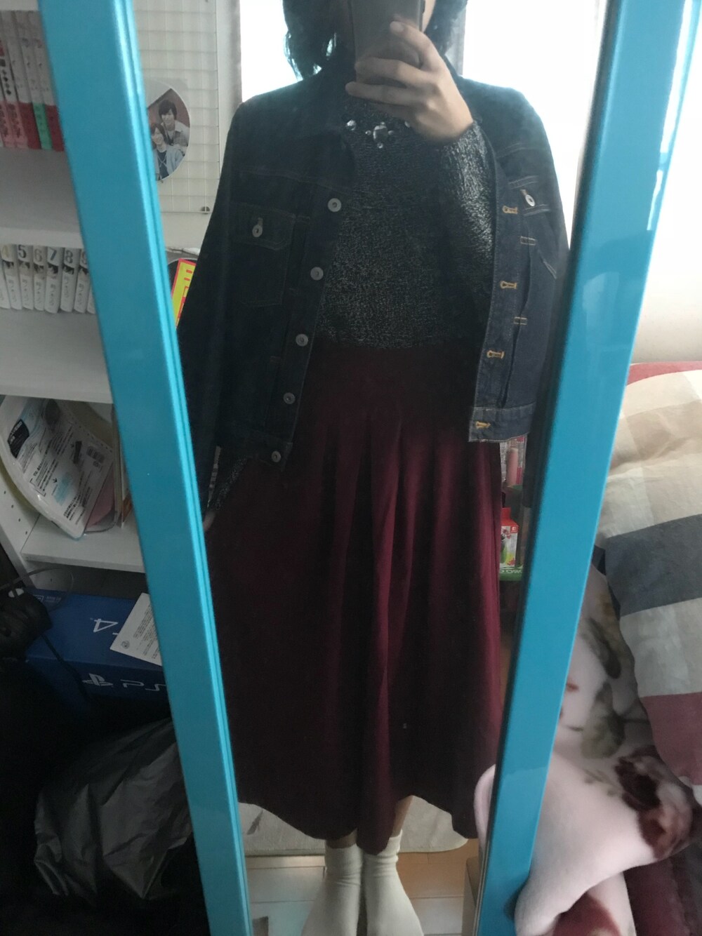 デートコーデ💫 寒かったからタートルのニット ビジュー付きでおしゃれ✨ グレーに赤が合うから赤のガウチョ この格好はちょっと寒かった、、 スプラトゥーン甲子園行ってました🏃 トップス KOBE LETTUCE 1500 バッグ MICHAEL KORS 45000