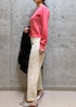 そろそろ重いコートは脱いで軽やかになりたい日の マウンテンパーカーを羽織った春コーデ。 中はウールカシミヤカーディガンで防寒は残しつつ、 ピンクの色味で春らしく。 通勤はもちろんお出かけにもおすすめです♪