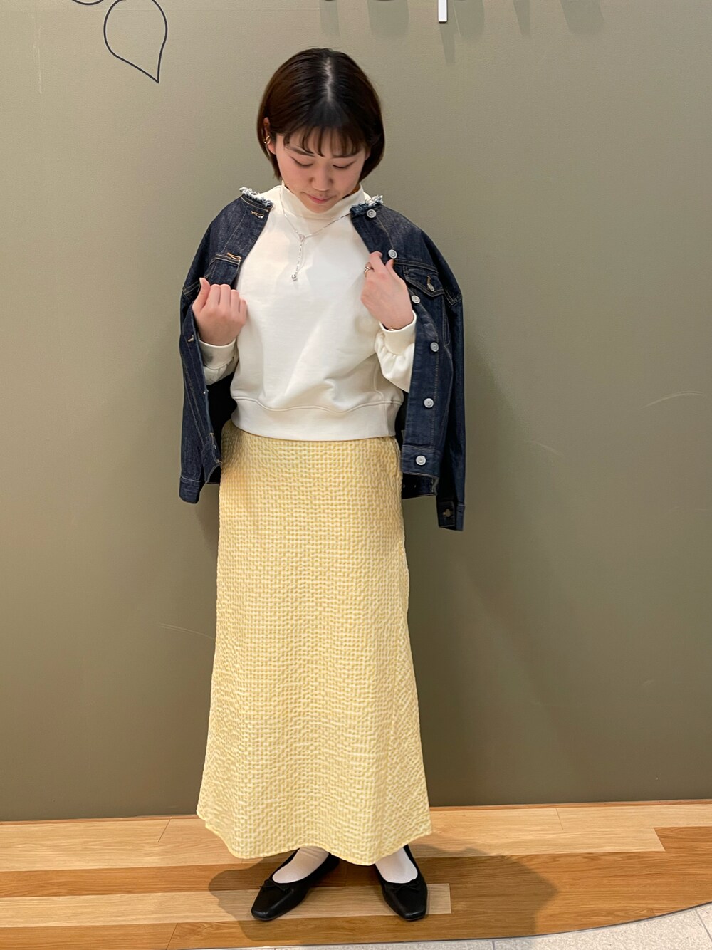 春らしい色が特徴のギンガムチェックのスカートコーデ 【トップス】 KBFとのコラボアイテムです! 丈短めでお袖は少しボリュームがあるのでオーバーすぎるのは苦手という人にもおすすめです 【スカート】 ぽこぽこした生地で柔らかい印象になります。フリーサイズの中でも腰回り少しタイトめです 【ジャケット】 今年もトレンドノーカラー 肩周りはカチッとしすぎないので中に厚手のものを合わせても着やすいです サイズ トップス F スカート F ジャケット F