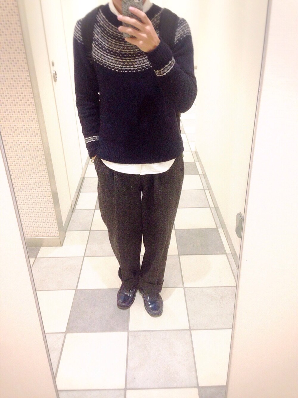 古着中心に。休憩中なのでアウターは着れてません笑 ウールのワイドパンツはお気に入りです。