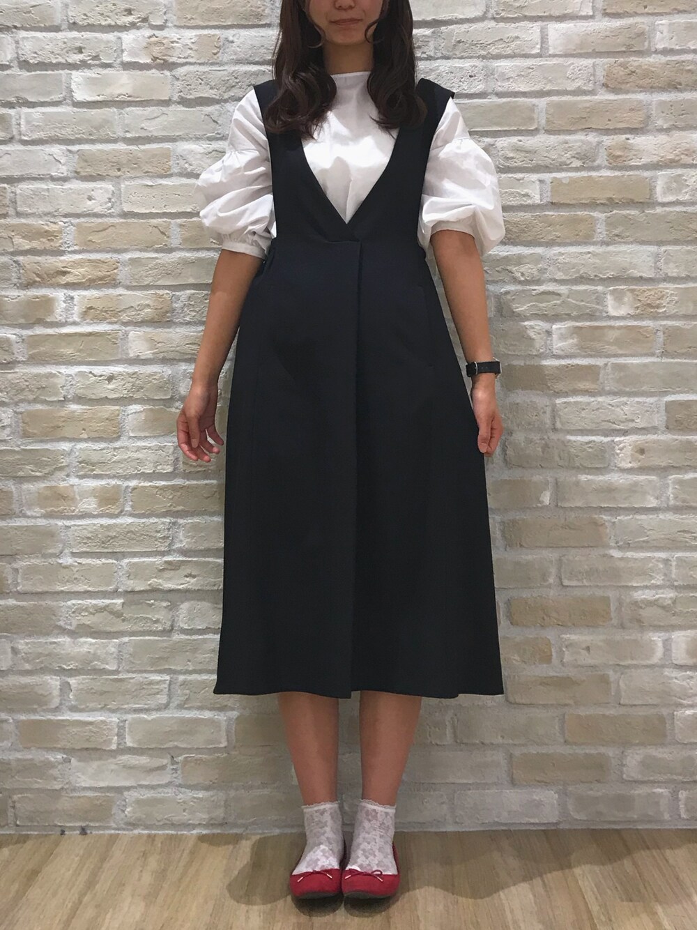saki(Maison de FLEUR)のワンピース「・SET2点 ジャンパースカート+ボリュームブラウス」を使ったコーディネート