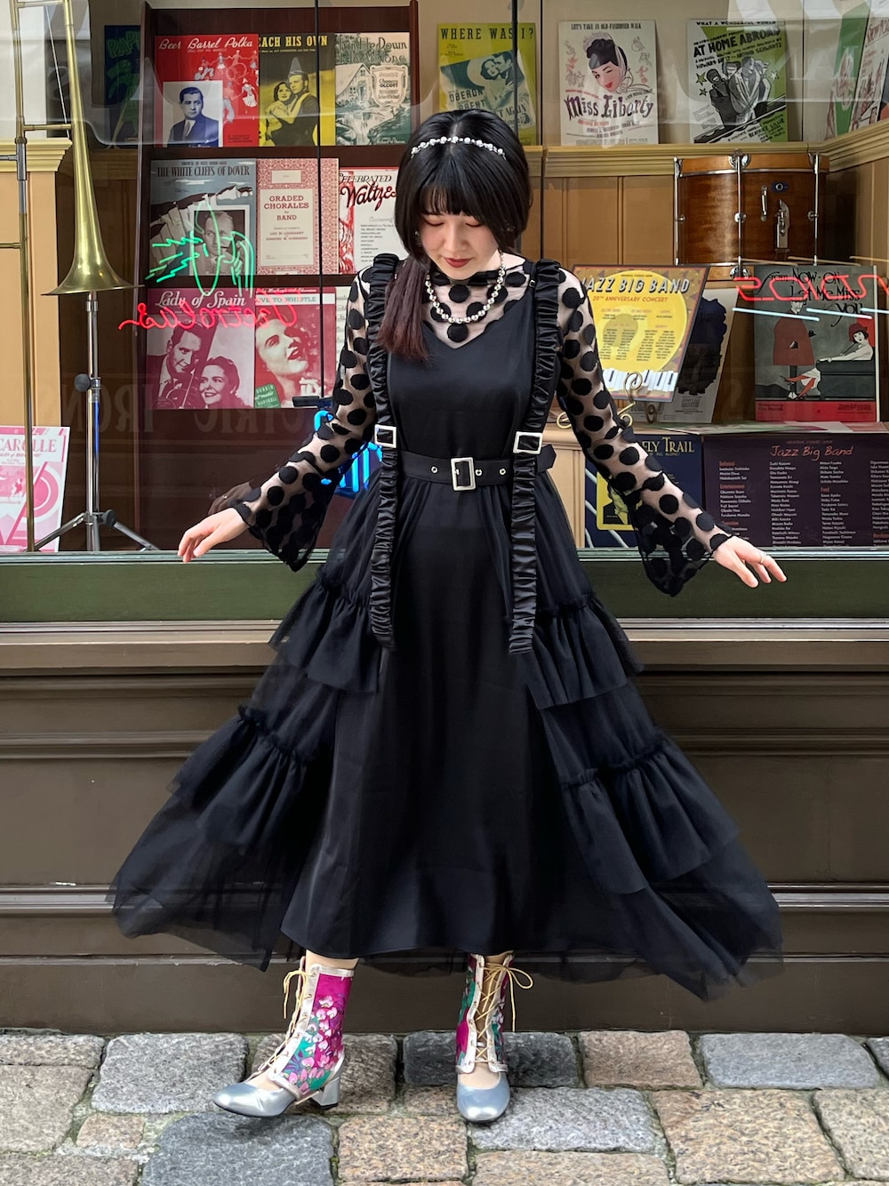 2025.6 USJのマスカレードホテルコラボの謎解きビュッフェ行った日 仮面舞踏会なのでドレスで参戦👗 ドレスってことしか決めてなかったけど、偶然黒合わせになった🐦⬛ 謎解き最高に面白いし、ビュッフェ美味しいし、ドレスっぽいコーデで世界観に入り込めたのも良かった! ベルトで付けるチュールスカートずっと欲しかったからお迎えできて嬉しい! 何年も眠らせてしまってたオビデブーツも履けた!可愛い〜