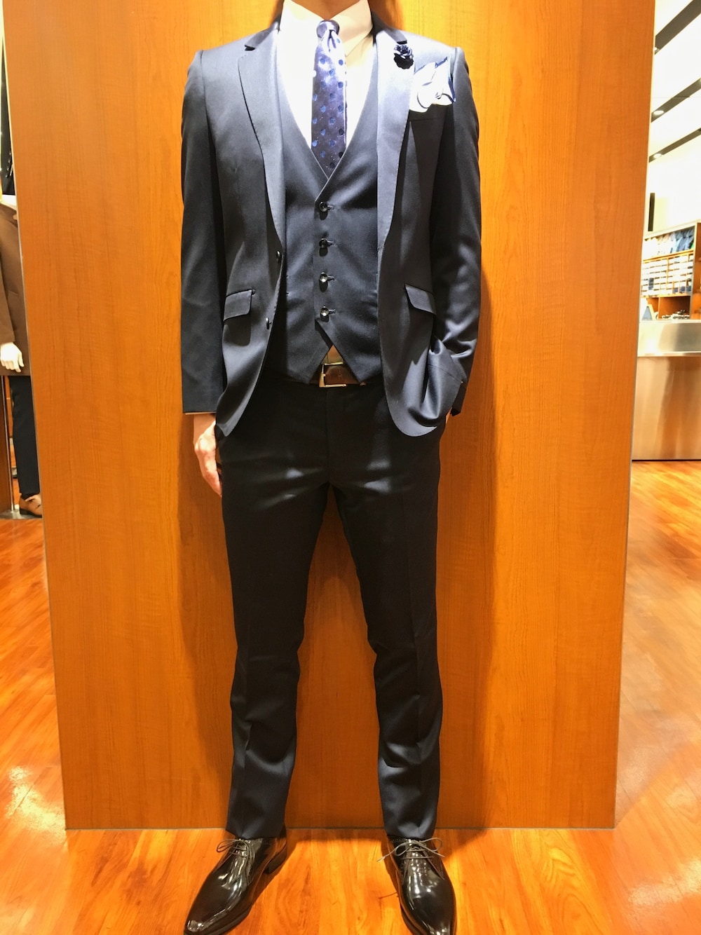 スリーピーススタイル💡 テイストはブラックラインのSKINNY! オールネイビーの中にレザーアイテムだけバーガンディを加えた大人コーデ❗️ クリスマスパーティへGO❗️