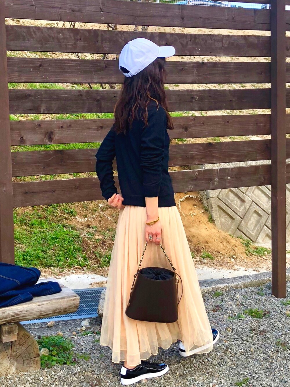 しずのスカート「チュールロングスカート」を使ったコーディネート