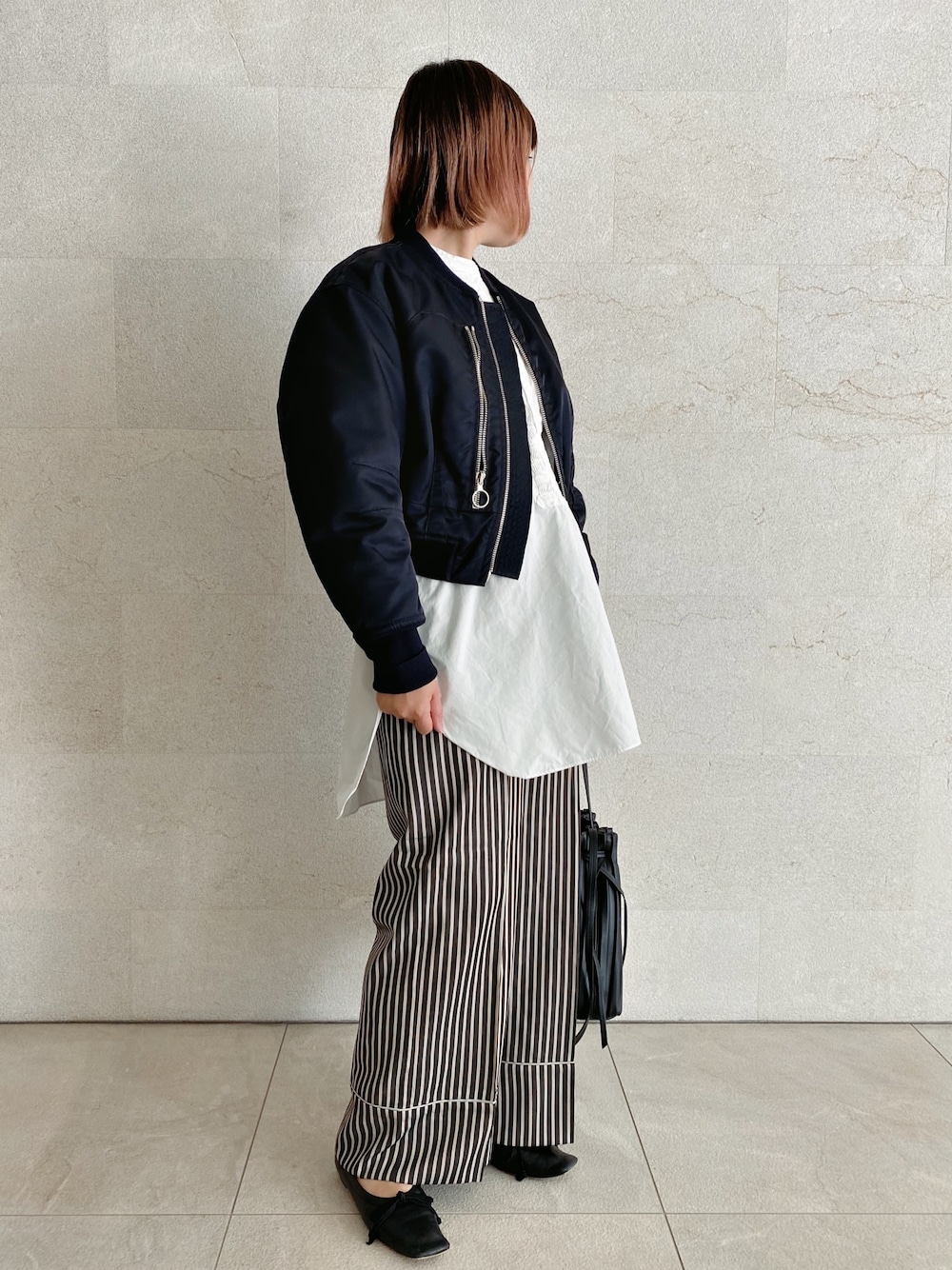 パジャマパンツ、ほどよいツヤで外行きにも全然行ける。