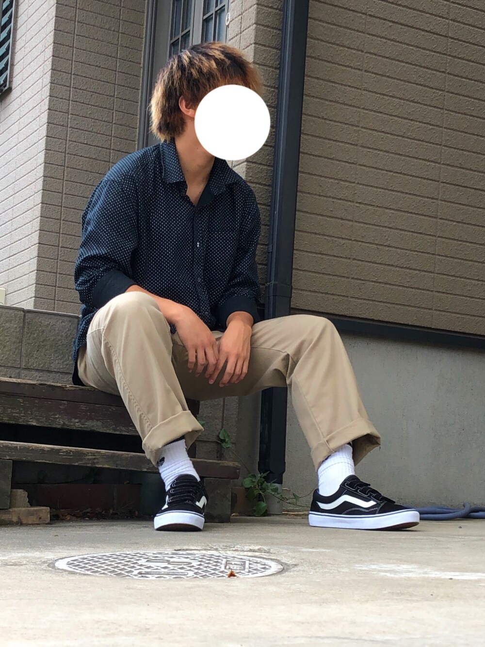 今日は雨だったので雨に合わせて水玉のシャツにしました☔ ロングソックス×VANSがめっちゃ合う! ストリート系もいいですがカジュアルもいいですなぁ😌😌