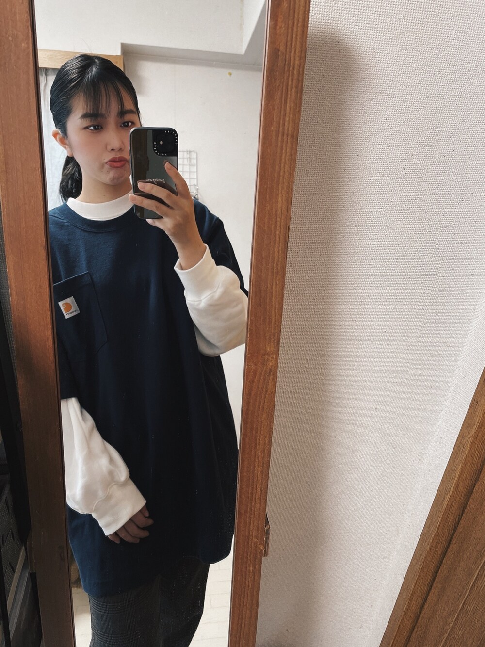 今日もお仕事になった〜 一昨日届いたcarharttのネイビーのTシャツ〜 かんわい〜👶🏻🤍🤍