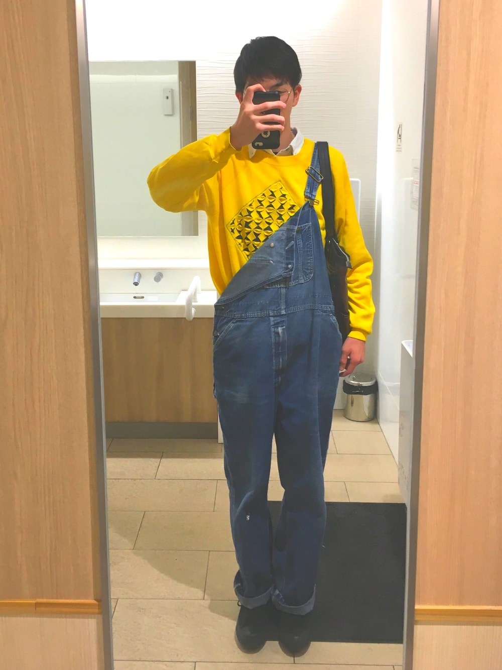 古着コーデ第二弾✨✨ 今日はミニオンコーデ! ショッピングモール行ったらJkにミニオーンて言われて少し恥ずかしかったでごわす スウェットの古着はブランド不明だった為GUを借りておりますm(__)m