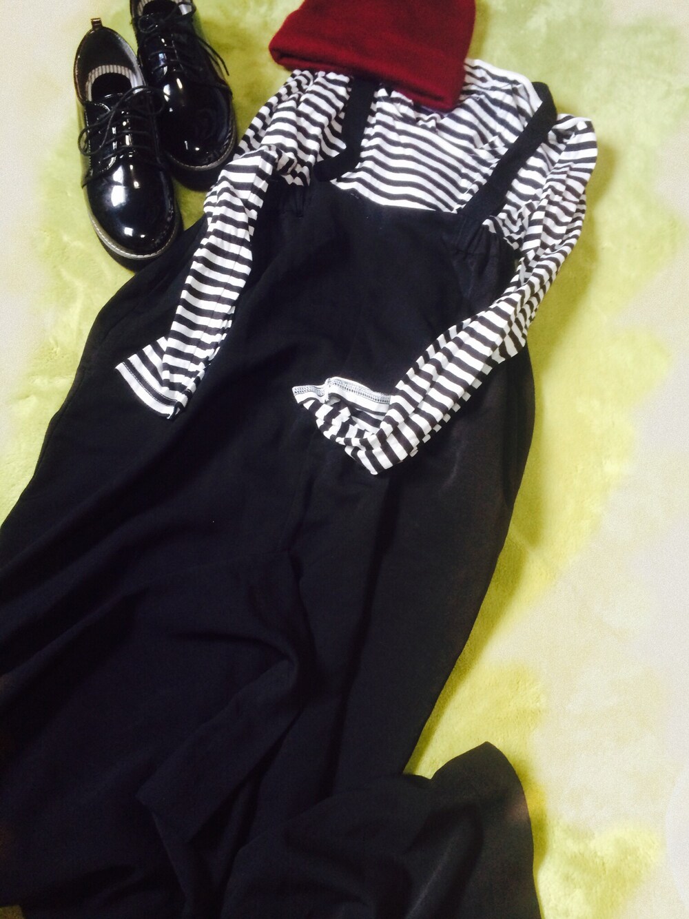 サロペット…KBF ボーダーロンT…ローリーズ ニット帽…KBF シューズ…グローバルワーク