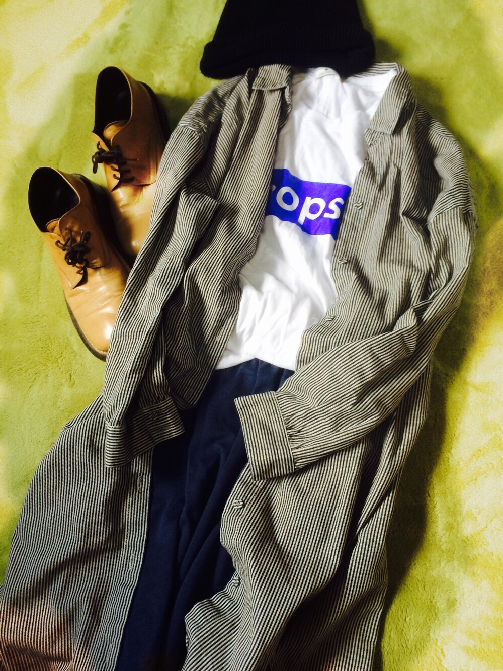 シャツワンピ…niko and ノースリーブ…チャオパニック スカート…不明 シューズ…古着 ニット帽…KBF