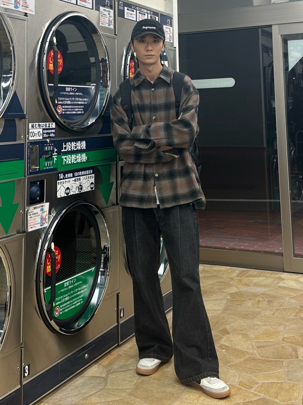 秋チェックコーデ ヴィンテージライクな色合いが特徴的なスタイリングをしてみました! 秋冬らしいブラウンがいい味が出ていて存在感抜群 色合いが馴染むようにブラックデニムをチョイス! フレアが脚長効果でスタイルアップ✨ 白スニーカーで抜け感を出すといい雰囲気にまとまります! 古着好きな人・オーバーサイズお探しの人チェックコーデ好きな人おすすめです🙋♂️
