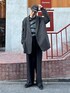 モノトーンコーデ🐦⬛ キレイメカジュアルにジャケットとスラックスを合わせてスタイリング! デザインニットとジャケットの色味がいい味出してるのでスラックスも映えて良きです! グレーとブラックの組み合わせは大人っぽくなるのでおすすめです🙋♂️