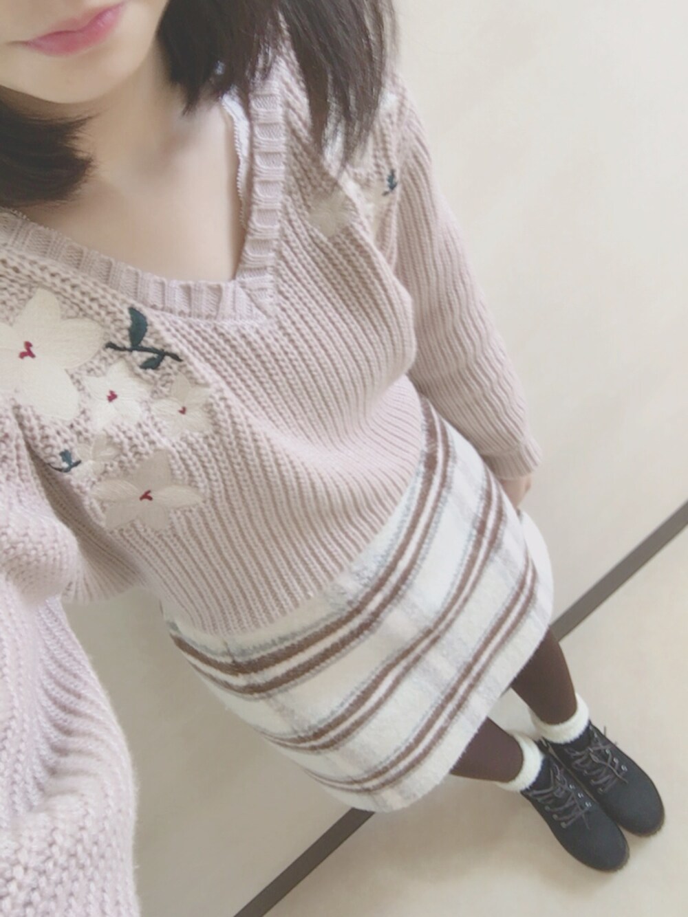 スカートのラインと合わせてブラウンのカラータイツ😌🌼 マジェ風のニットにマジェのチェックスカート😊💓 プチプラ~🌸